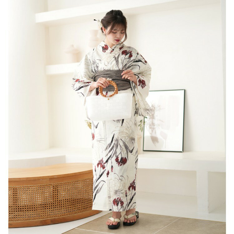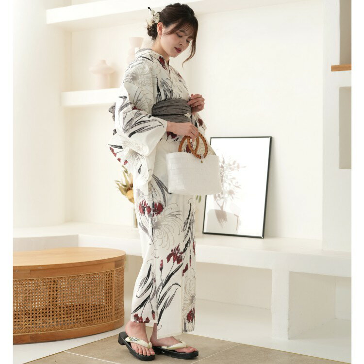 身丈 165cm 袖丈 約53cm 裄丈 約69cm 素材 ゆかた : 綿100% 帯 : ポリエステル 下駄 : 桐(商品画像はイメージです。