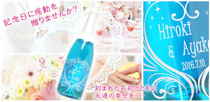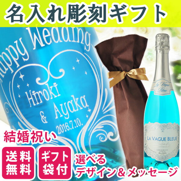 お名前は必ずローマ字でご記入ください 名入れ彫刻ボトル!瓶に直接彫刻します! 結婚のお祝いにメッセージを込めて、世界にひとつだけのギフトを! ブライダルで人気の幸せを呼ぶ青「ラ・ヴァーグ・ブルー」。
