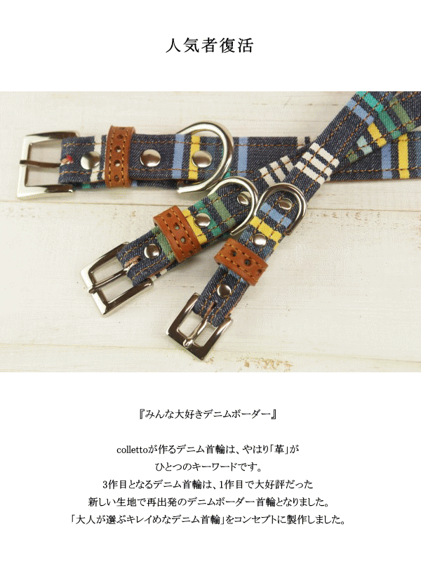 【デニムボーダー首輪】 犬 首輪 小型犬 猫 デニム 全2色 おしゃれ かわいい 本革 革 名前入 迷子札 可愛い かわいい 犬首輪 犬の首輪 犬用首輪 ネコ首輪 ねこ首輪 男の子 女の子 皮 レザー カジュアル お散歩グッズ 柴犬 豆柴 トイプードル チワワ ダックスフンド
