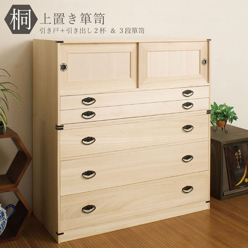 桐タンス たとう紙サイズ 3段+上置き2段 着物収納 衣装ケース 衣類収納 チェスト たんす 和風箪笥 和タンス 和風チェスト 和箪笥 送料無料 hi-2002