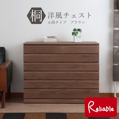 hi-0085 【代引き・時間指定不可】 桐洋風チェスト 6段 ブラウン モダン 天然木 チェスト たんす 桐箪笥 日本製 【c 234】