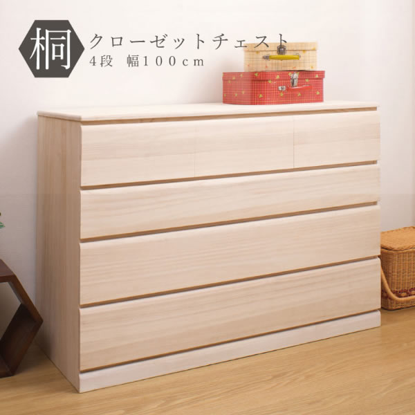 桐クロ−ゼットチェスト 幅100cm 4段 たんす チェスト 衣装ケース 衣装箱 桐タンス 桐衣裳箱 桐着物 和箪笥 桐衣裳ケース NR-HI-0020